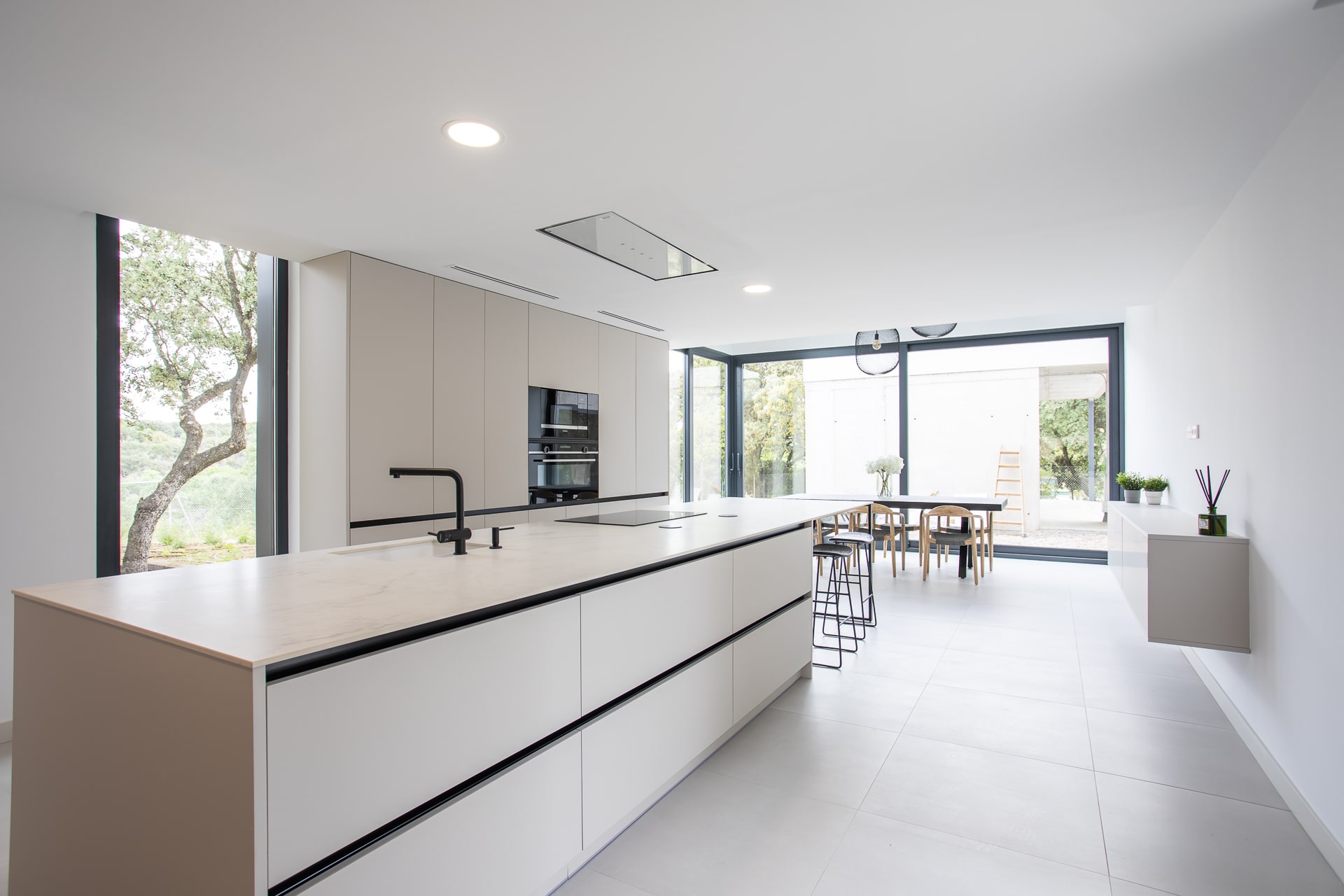 Uno de los grandes avances ha sido la consolidación de las superficies ultracompactas y los porcelánicos de gran formato. Estos materiales permiten: